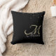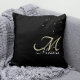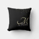 Faux Gold Glitter + Embossed Gold Monogram Black Throw Pillow
