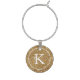 Faux Gold Glitter with Monogram Initial Wine Glass Charm