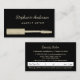 A professional black and gold colored makeup artist business card with a hint of glitz. This appointment reminder style design features a glamorous faux gold colored mascara brush. Personalize by adding the name of the cosmetologist or beautician. Flat printed image, NOT reflective glitter.