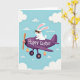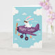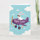 This card shows a stylized white bunny 🐰 wearing dark sunglasses as it pilots a plum-colored biplane across a light blue sky. The bunny’s relaxed grin and steady posture suggest a friendly, affectionate confidence, like it’s flying by just to say hello. Puffy white clouds float around the plane, leaving plenty of open space that keeps the scene airy and easy to take in. Across the side of the biplane, the words “Happy Easter” appear in large white letters, centered and easy to read. Nearby, the word “grandson-” is placed as a smaller add-on detail, set close to the greeting so it feels like a direct note to someone special. Under the wings, two striped egg-shaped ornaments dangle like little gifts, adding a gentle spring touch 🌷. The plane sits in the mid-ground while the sky and clouds recede behind it, giving the flight a simple sense of depth. The plum fuselage is accented by lighter highlights, and the hanging eggs show alternating stripes in soft contrasting tones.