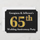 This invitation design features the ordinal number "65th" with a faux gold-like appearance. It also features customized names. It could be used for a married couple’s sixty fifth wedding anniversary party.