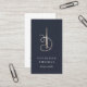 Elegant vertical business cards for seamstresses, fashion designers, stylists, tailors and more feature a needle and thread illustration in faux gold foil, on a rich navy blue background with two lines of custom text in white. Customize the back with your full contact details, displayed beneath a smaller sewing needle illustration.