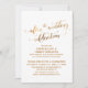 Plain white envelopes are included with paper invitations and will come to fit the invitation size you select. If you don’t need the envelopes, you may choose to not receive them by selecting the dropdown below "Envelopes" and choosing "None." If you’d like to have a design on your envelopes, you can browse all of these available envelopes to find the design that complements your Faux Gold On White After The Wedding Celebration Invitation.