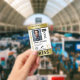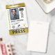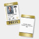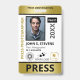 Vertical press ID with faux gold and black as accent colors. Add photo, logo, name, title, ID number and more against a white background.