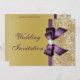 Faux Gold Sequins Purple Bow Wedding Invitation