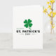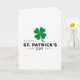 Designed with a simple St. Patrick’s Day look, this card centers on a four-leaf clover in deep emerald green 💚 set against a bright white background. The clover sits in the upper middle area, like a lucky charm offered between close friends with an easy, affectionate gesture. Beneath it, the greeting “HAPPY ST. PATRICK’S DAY” is arranged in two lines, keeping the layout balanced and easy to read. “HAPPY” appears first in a lighter green, adding a gentle lift before the darker line of text. “ST. PATRICK’S DAY” follows in deep charcoal letters, giving the message weight without crowding the page. Thin horizontal lines underline the lower text, adding a tidy frame and a steady, grounded feel. There’s plenty of open white space around everything, so the green clover ☘️ and the lettering stand out clearly. The clover’s smooth curved leaves contrast with the straight underline strokes and the crisp, centered text below.