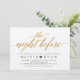 Having your Faux Gold The Night Before Invitation match the theme of your party is a great detail that your guests will appreciate. The thoughtfulness of a consistent party theme is often appreciated and can show your guests that you can host a cohesive event.