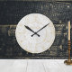 This unique, faux marble clock, looks realistic with faux engraving for clock numbers, minute marks, and name in hand lettered script. Gold with white texture background.