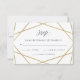 This simple, stylish wedding RSVP card features a faux gold diamond on a white background, and modern typography in midnight blue.