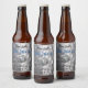Home made beer bottle labels, with digital artwork of dented metal. A silver tone decorative circle, in the middle of the label has a blue one letter monogram. Personalize all the text to suit your bottling needs. Great for your home made beers.