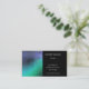 A stylish business card for any occupation or business. The left side has a blue and green hammered metal graphic. The right side is black with white text. The back has hammered metal graphic in pink.