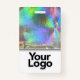 Faux holographic design sparkles delightfully behind a photo template with black and white frame. Easily update the name and professional job title for each custom employee badge. There is also space for a company logo—delete to leave blank. Backside features more faux glitter and an image template perfect for employee bar codes. Available in many other styles and colors.