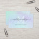 This business card features a faux holographic iridescent background with modern script typography. Personalize it with your own text.