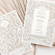 Plain white envelopes are included with paper invitations and will come to fit the invitation size you select. If you don’t need the envelopes, you may choose to not receive them by selecting the dropdown below "Envelopes" and choosing "None." If you’d like to have a design on your envelopes, you can browse all of these available envelopes to find the design that complements your Faux Ivory Lace Wedding Invitation.