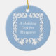 A double-sided blue ornament featuring a faux clay detailing in crisp white. Add your own personalized message and make this a great holiday gift!