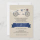 Faux Linen Dark Blue Tandem Bicycle Wedding Invitation