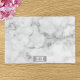 This stylish placemat has a digitally created texture that looks like white marble. On the bottom there is a small silver gradient badge that has a place for a name.