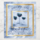 Fun wine labels for your wedding favor wines, featuring a trio of wine glasses and marbelized background in popular blue, with faux gold trim, personalized with the names of the bride and groom, and text of your choice.