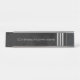 This desk nameplate features a light grey name in a futuristic font set on a mottled black urban grunge background, with three gradient stripes, imitating a metal on faux suede look, offset to the right of the nameplate.