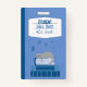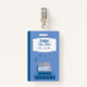 Fun blue student hall pass badge in form of a faux notebook and featuring a cat sleeping on top of a stack of books .