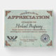 Personalized certificate of appreciation award plaque with an aged or vintage paint theme; just change the number of years, employee name, boss' signature and logo and yer good ta go, it's the perfect addition to your employee incentive and engagement programs.