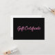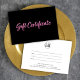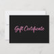 This gift certificate features the words "Gift Certificate" in faux pink glitter against a black background on the front.