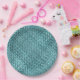 Faux Rattan Teal Turquoise Zigzag Weave Pattern Paper Plates