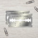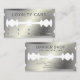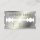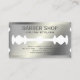 Creative standout style of loyalty card inspired by barber business. Razor shave looks in faux shiny metal texture.