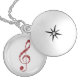 Faux Red Diamond Treble Clef Music Locket Necklace