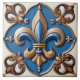 Faux Relief Blue & Gold Fleur de Lis Ceramic Tile
