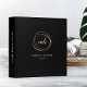 Keep track of your product inventory, appointments, customer data and more with our chic black binder. Design features your initial(s) or monogram in calligraphy script inside a faux rose gold foil abstract circle element. Personalize with two lines of custom text beneath, and add additional custom text to the spine. Perfect for salons, beauty retailers, makeup artists, spas or any business. Mini size also available in our shop.
