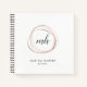 Chic notebook design features your monogram or initials in modern calligraphy script, inside an abstract circle in faux rose gold foil. Personalize with two lines of custom text beneath.