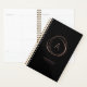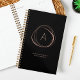 Chic planner in classic black features a faux rose gold abstract element encircling your single initial monogram. Personalize with a line of custom text beneath in modern lettering; we love it with your name or business name and the year. NOTE: THERE IS NO GOLD FOIL ON THIS PRODUCT. The rose gold look is produced using subtle color variations that mimic the look of foil.