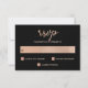 Faux Rose Gold and Black Bokeh Heart Wedding RSVP Card