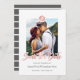 Modern and trendy save the date photo card in gray, white, and faux rose gold foil, your photo and monogram, and a hand-lettered brush script.