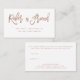 These stylish, modern referral cards feature a clean white background, with trendy faux rose gold handwritten script typography that says "Refer a Friend."
