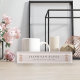 Elegant desk nameplate in pale cameo blush features two faux rose gold foil pineapples flanking your name and title or business name in modern grey lettering.