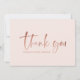Beautiful modern wedding flat card. Features the words thank you in a faux rose gold stylish script on a blush pink background on the front with a simple sentiment on the back.