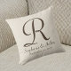 This monogrammed 16" x 16" square pillow is decorated with a faux rustic bleached burlap textured off white background. Monogram and text are bronze color. Pattern and text repeat on back. Default fabric is cotton, but also available in polyester. Unique and beautiful home decor. classy, elegant, and chic. Neutral colors go with any decor. All Rights Reserved © 2014 Alan & Marcia Socolik.