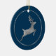 Faux Silver Foil Reindeer On Blue (Not Real Foil) Ceramic Ornament