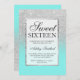 Faux silver glitter teal chic Sweet 16 Invitation