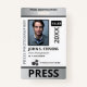 Vertical press ID with faux silver and black as accent colors. Add photo, logo, name, title, ID number and more against a white background.