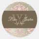 Faux silver/pink Damask monogram wedding stickers