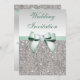 Faux Silver Sequins Diamonds Mint Bow Wedding Invitation