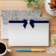 Elegant custom silver and navy blue wedding / bridal shower, baby shower etc envelopes with a beautiful glittery silver printed image sequins jewels, gems, glitter pattern, cute, sophisticated shiny printed navy bow and ribbon and pretty digital diamond bling jewel on a silver gradient background. Please note: These are flat printed graphics - not real bow, diamond or sequins. These classy glamorous envelopes are decorated inside and out. Beautiful, stylish, chic, trendy, modern, glitz and glamour envelopes. If you need assistance customizing your product please contact me through my store. I will be happy to help. I have matching products for weddings and baby showers in my store.