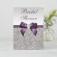 Faux Silver Sequins Purple Bow Bridal Shower Invitation