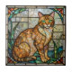 Faux Stained Glass Orange Ginger Tabby Cat Art Ceramic Tile