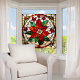 Infuse your space with the beauty of the holiday season with the Faux Stained-Glass Poinsettia Large Window Cling. This stunning design features a vibrant poinsettia in full bloom, with its signature red petals and green leaves, set against a backdrop of soft golden hues. The AI-generated image mimics the elegance of traditional stained glass, with rich, radiant colors that glow beautifully when light shines through, adding a festive touch to any window.