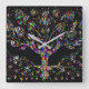 Faux Stained Glass Tree Of Prosperity Square Clock