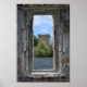 With this poster that looks like a stone window you can look out from your castle in Scotland across the loch to another Medieval castle tower. The tower is square and lies among trees on an island. It dates from the Middle Ages and Mary Queen of Scots was held prisoner here. The stone window frame matches the construction of the castle and is perfect for a room with a Medieval theme.